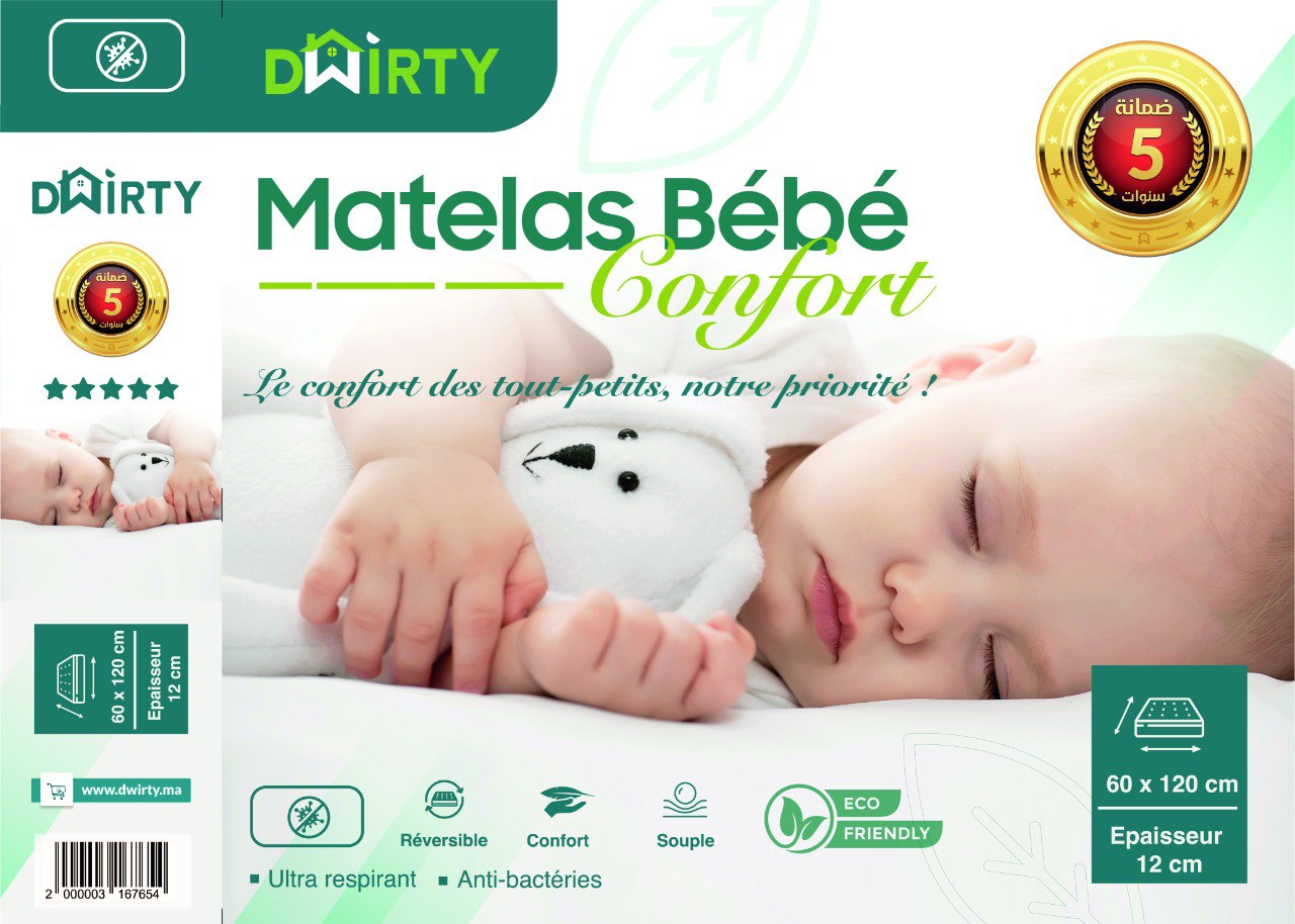 Pack Matelas Bébé Confort + Draps Housse Bébé Imperméable 60x120305.00 dhs